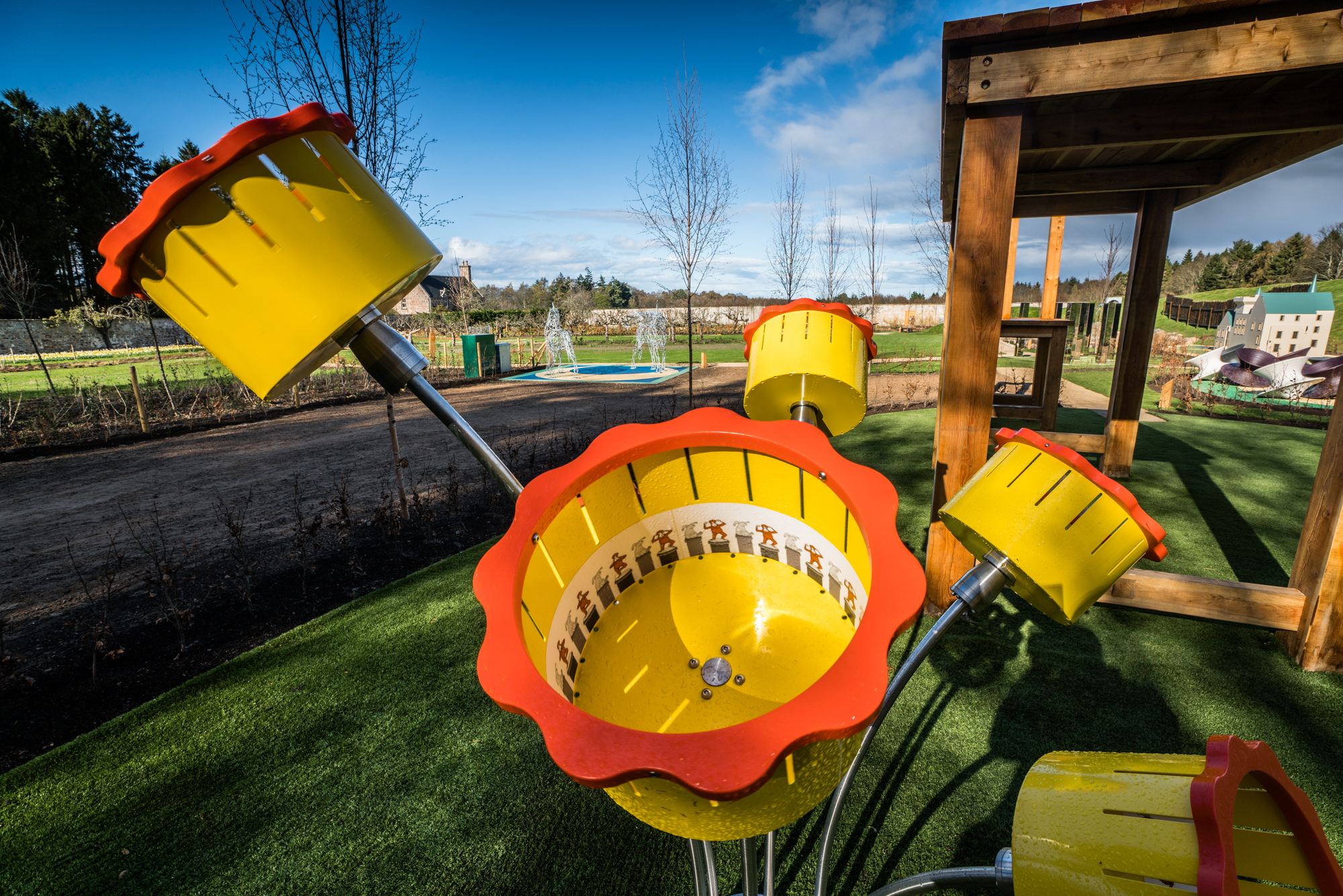 The Brodie family always had a range of musical instruments in the castle, and these playful copies are for families to experiment with and to create exciting sounds that echo all around the Playful Garden.