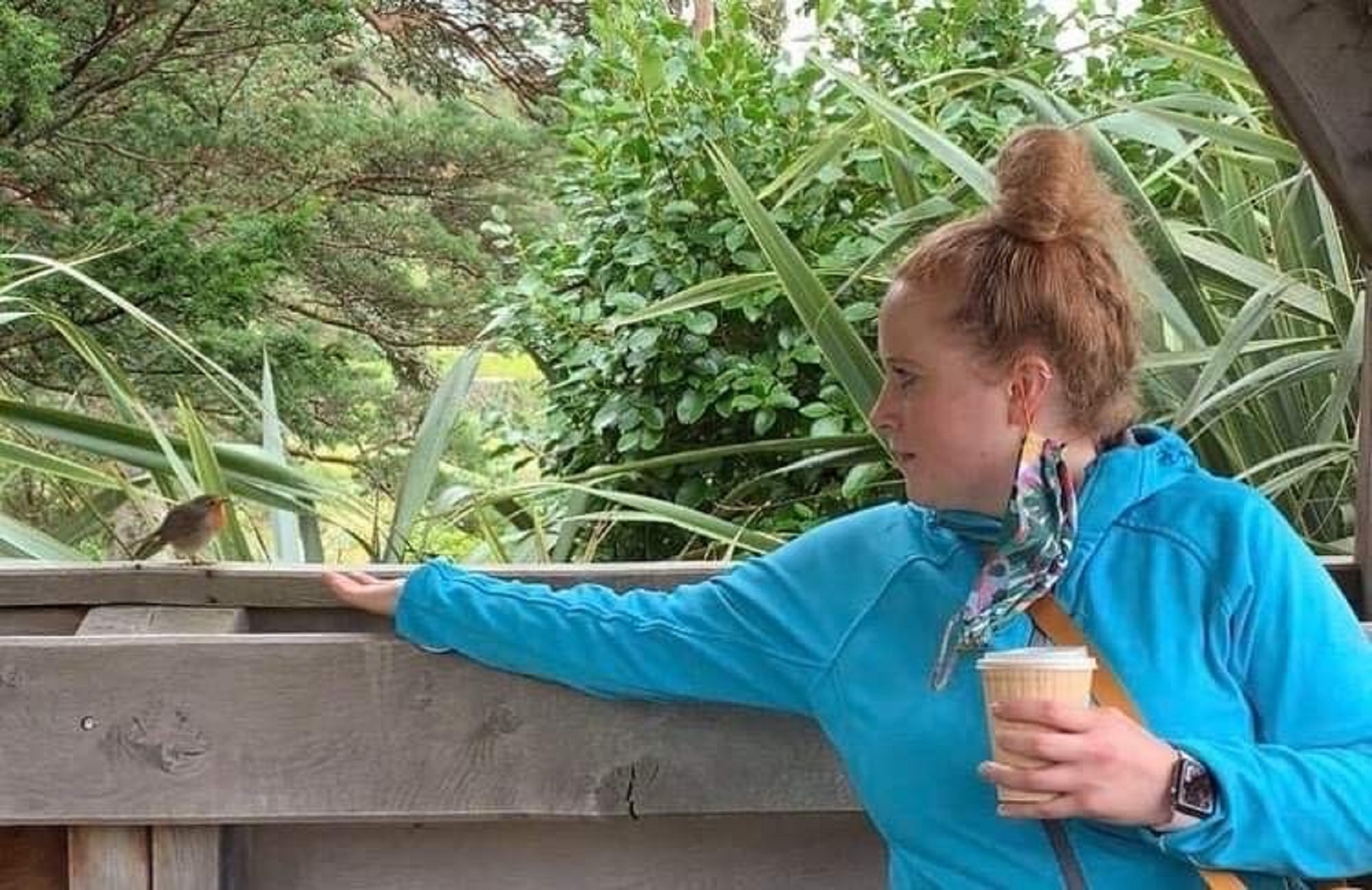 ‘This year, now aged 27, I wanted to go and visit the tree. It was heart-warming knowing that my grandparents had visited already, and I took a photograph with the leaf to match theirs. I Facetimed my sister whilst there and we shared a special moment. I particularly enjoyed spending time in the gardens after seeing the leaf. My partner and I sat in the wooden gazebo above the loch with a coffee, sharing stories and remembering what an incredible woman my mother was. We even had a special encounter with a little robin. I know that I can go back any time, and my sister and I are planning to take a trip with her children in memory of their special gran.’