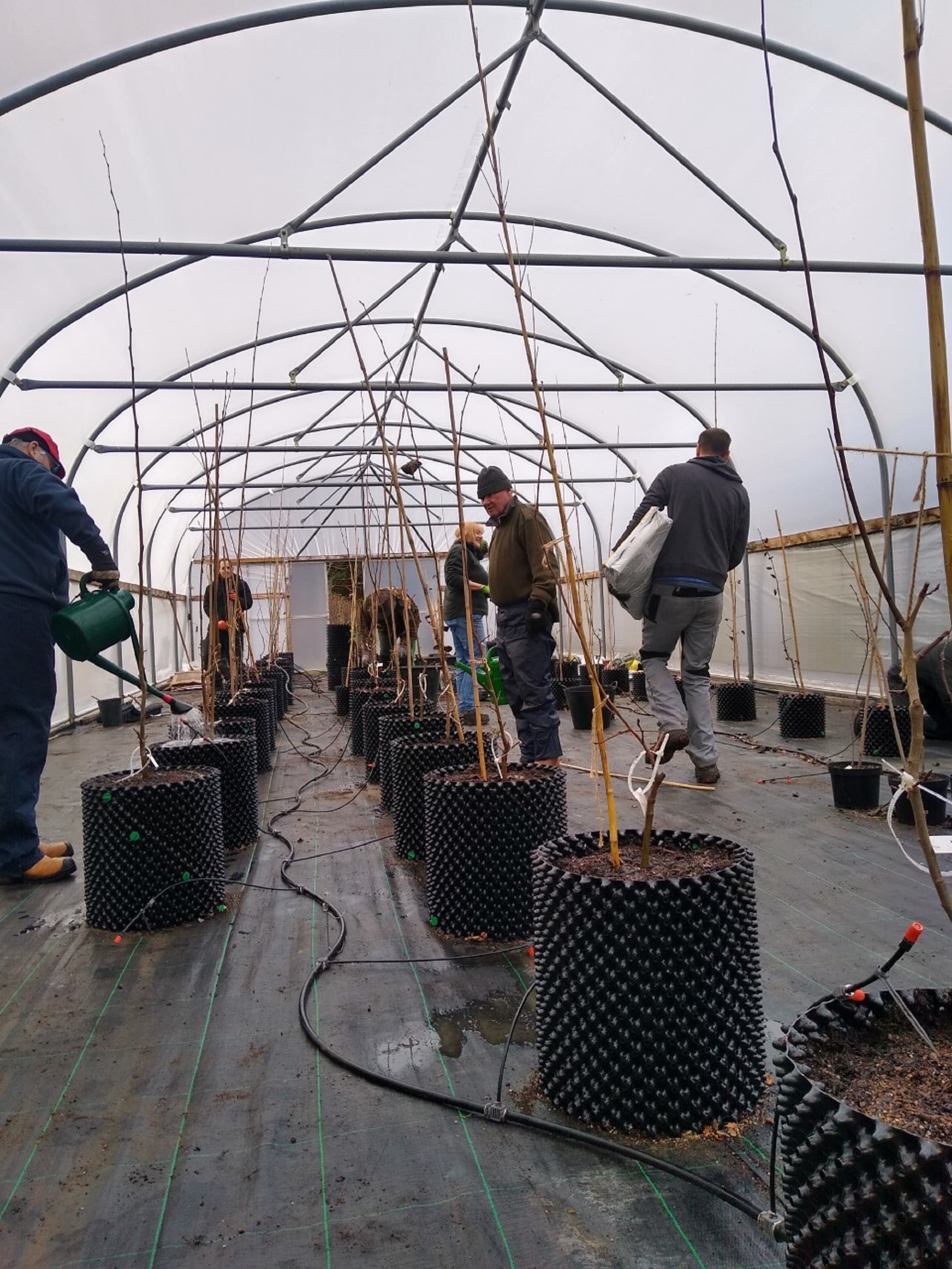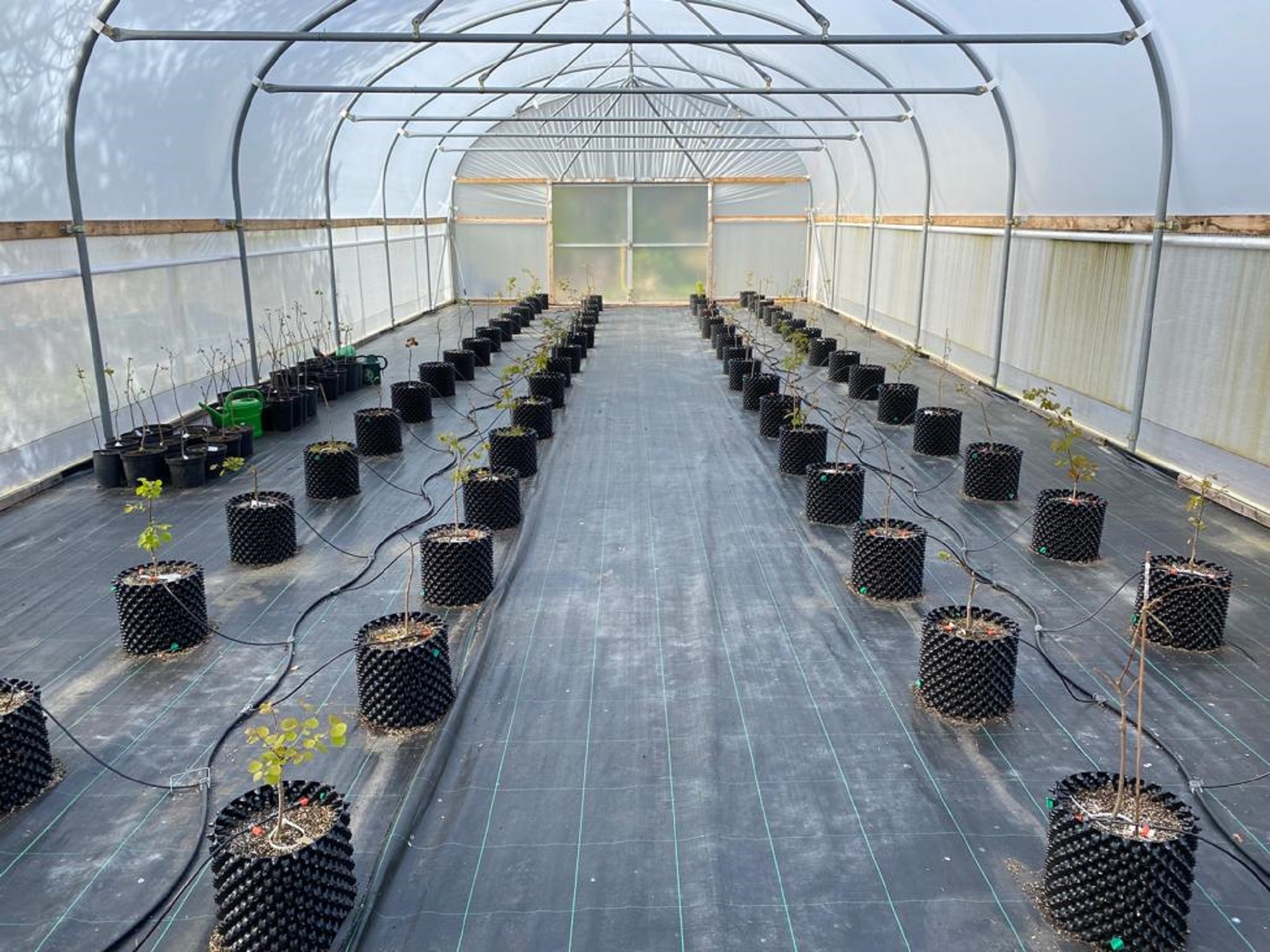 Once the scions have been grafted, the root stock is then potted into air pots that enable the trees to grow without the roots becoming pot-bound. An automated irrigation system has been installed in the polytunnel nursery, which helps with consistent watering of the trees. The polytunnel is large enough to allow the trees to grow to sufficient maturity to produce seed, so they can become a seed orchard – the next phase in this exciting conservation project.
