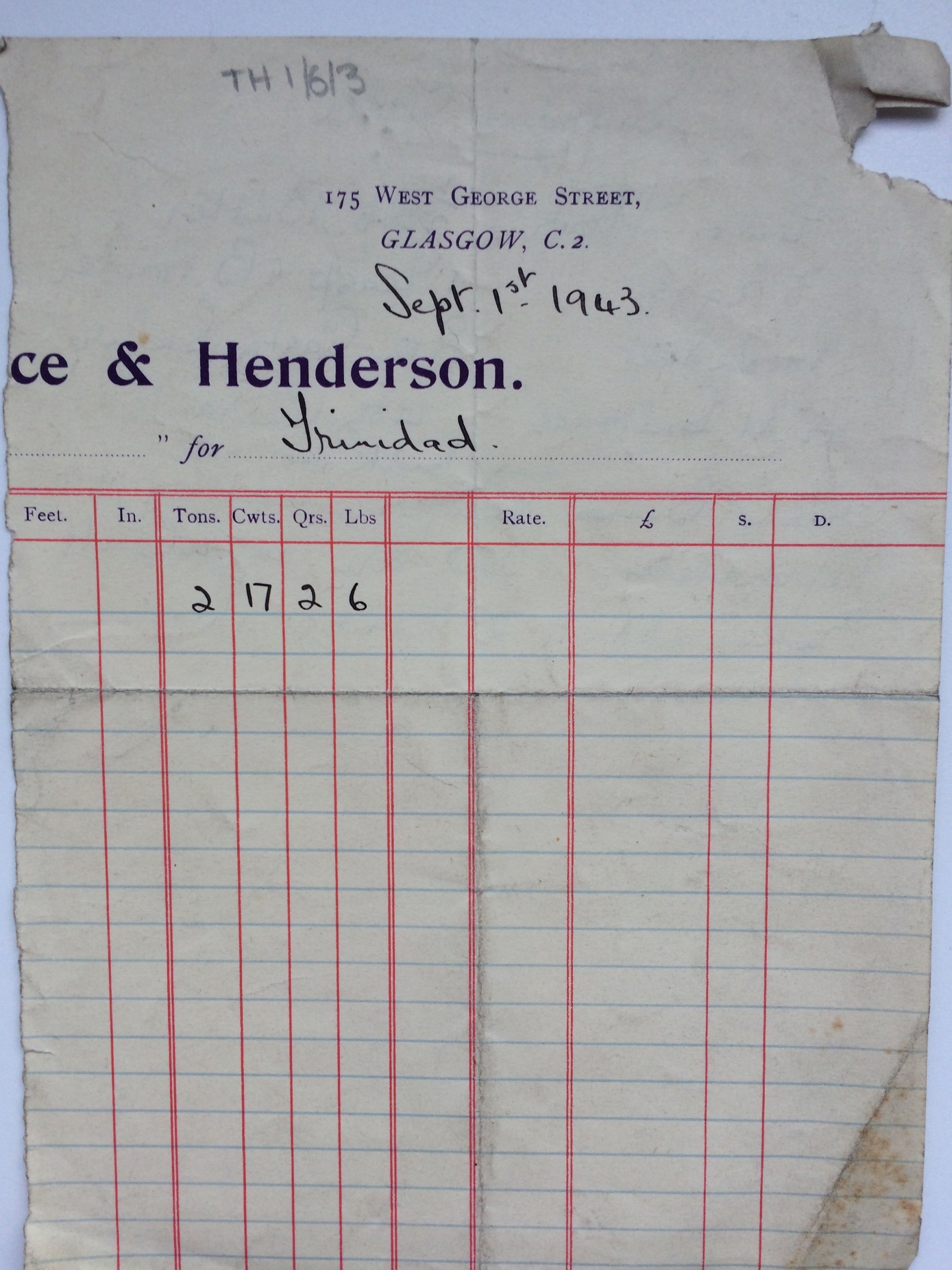 Agnes worked with shipping firm Miller & Richards, but in 1914 she moved to another shipping firm, Prentice, Service & Henderson on West George Street, on the understanding that she would have to give up the job when the men returned from war. As it turned out, she remained with the firm for almost 50 years. Most of her female colleagues would have stopped working after they married, but Miss Toward never married and continued to work until the age of 73, seeing out another world war in her Buccleuch Street flat.