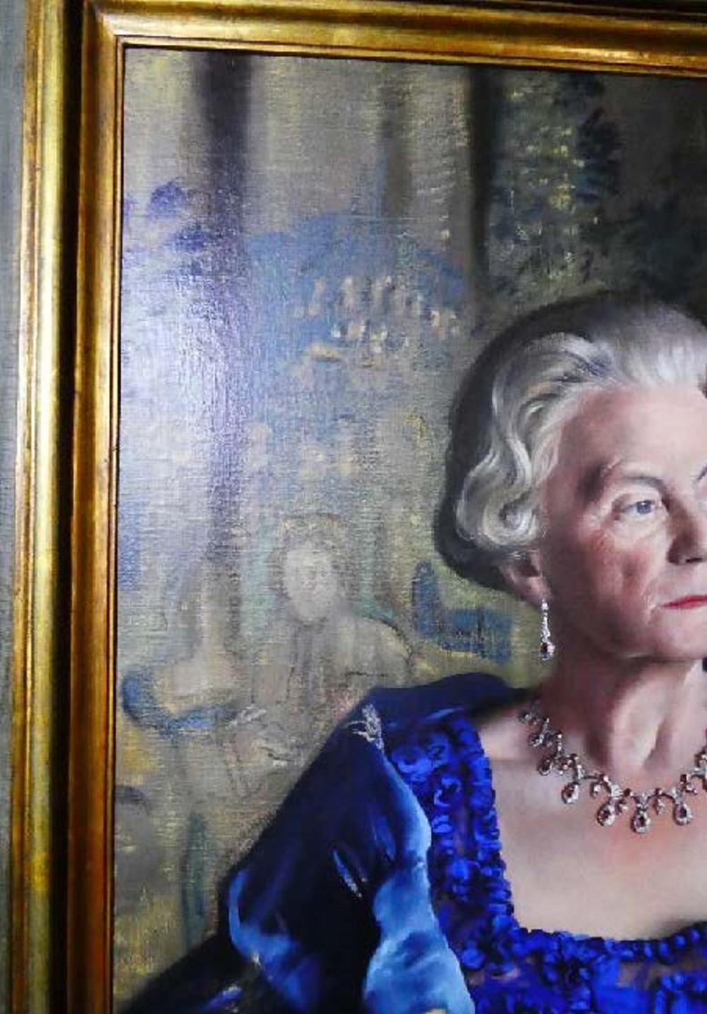 Comparisons between the complete tapestries at Fyvie and the smaller pieces that were not listed in early inventories, or on the Trust’s database, illustrate this. When installing the portrait of Lorna Marsali Forbes-Leith at Fyvie Castle in 2021, the re-hang of the paintings included the addition of several 20th-century family members to support Lorna’s story. One of these was a painting of Ruth, Lady Forbes-Leith, who was married to Sir Ian Forbes-Leith and was the grandmother of the present Baronet of Fyvie.