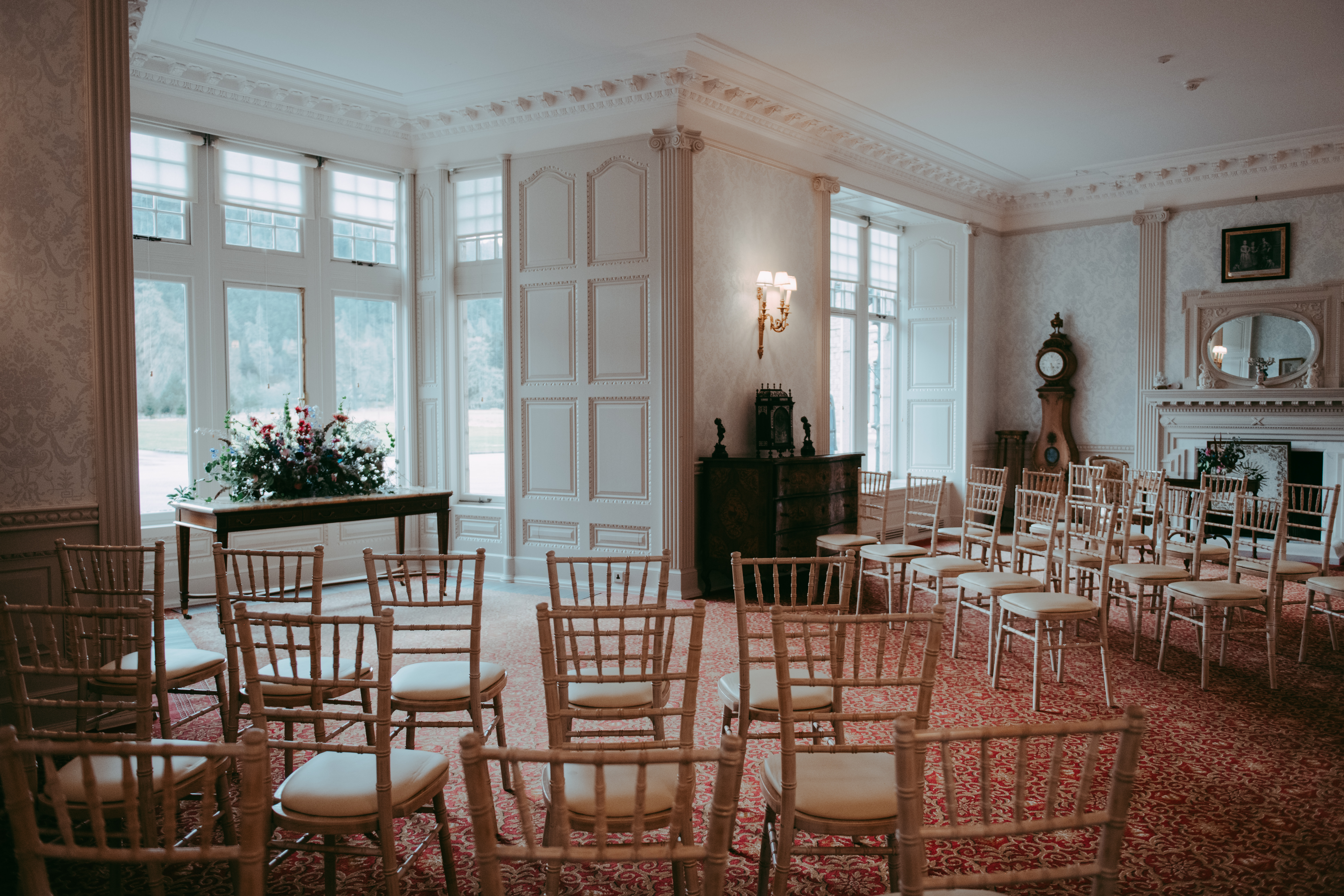 Inside the Lodge, you have a choice of three exceptional wedding ceremony locations: exchange your vows on the balcony of the Grand Staircase, the Craggan Room or in the bright and elegant Drawing Room.