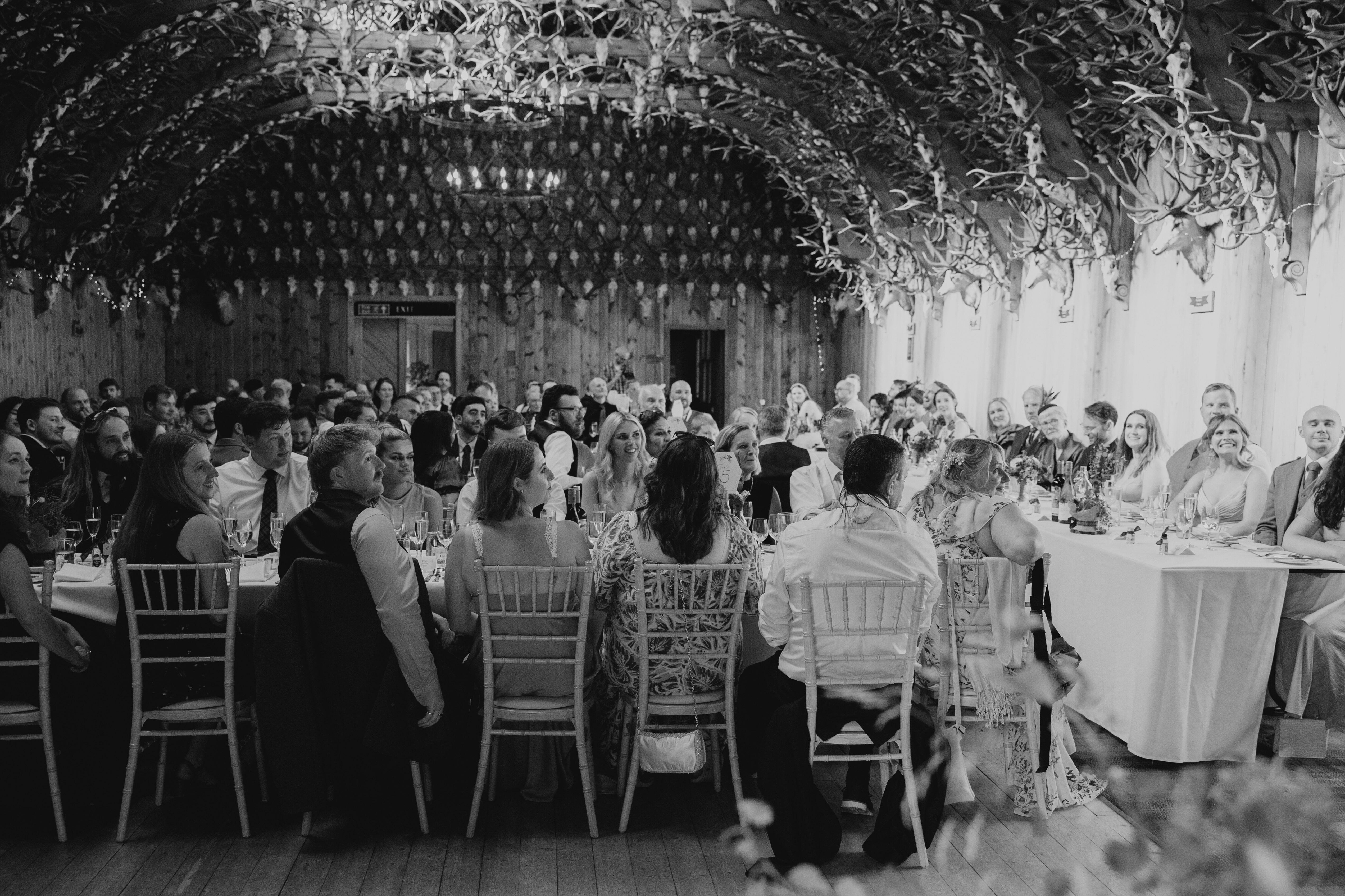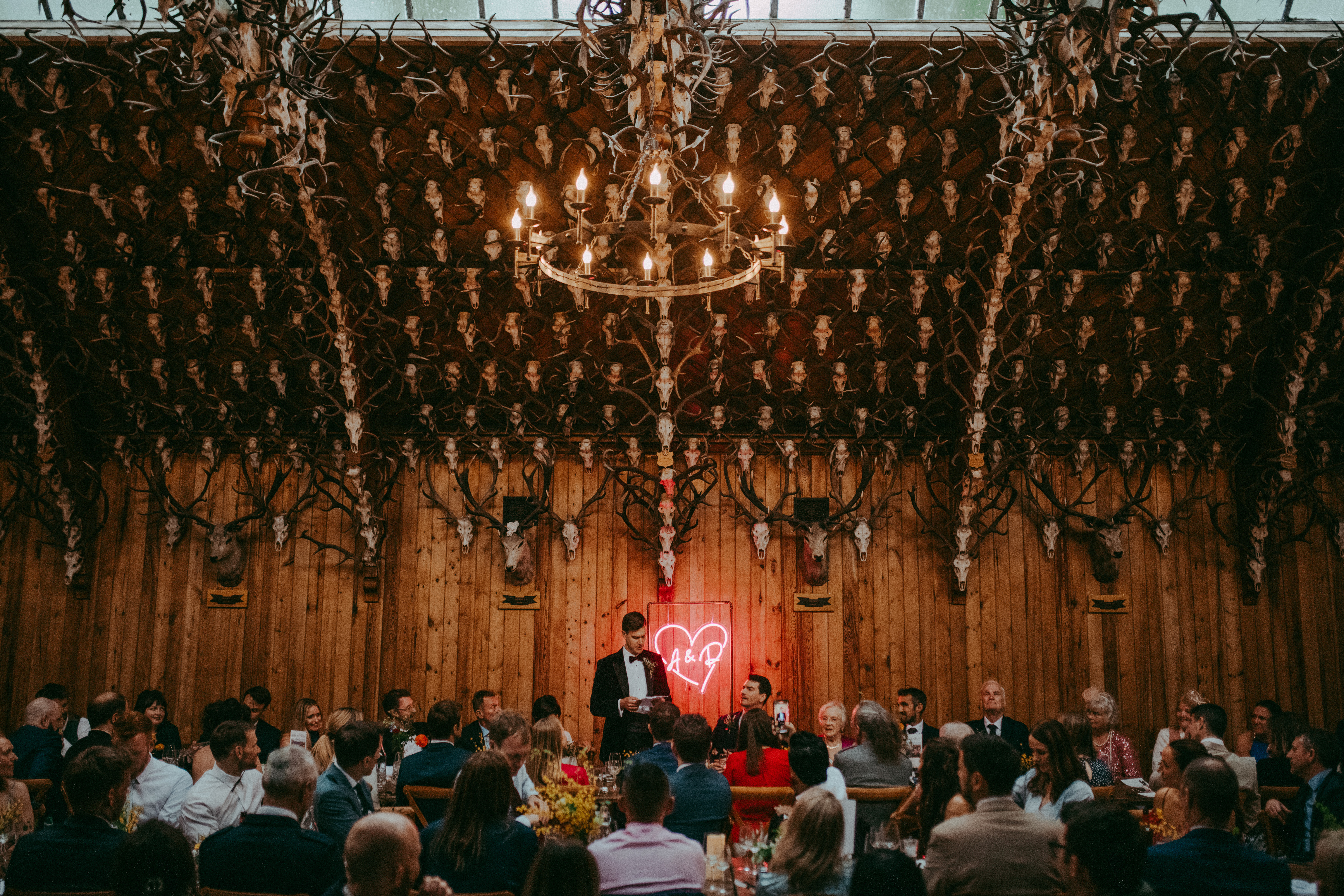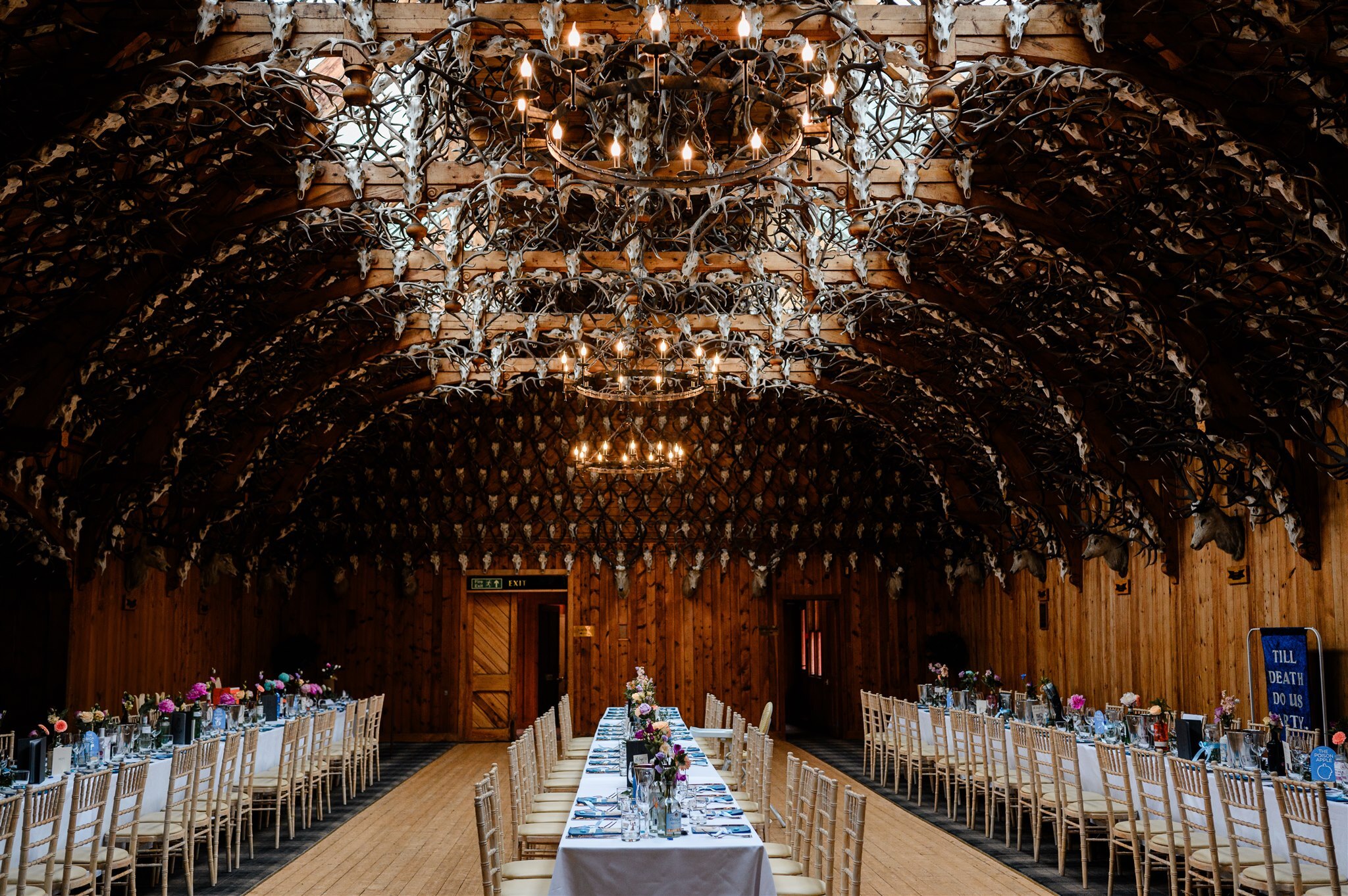 A short walk from the main Lodge brings you to the impressive Stag Ballroom, a distinctive timber building featuring approximately 2,500 Victorian-era stag antlers. This stunning venue is perfect for larger wedding receptions, evening meals and dancing, creating a memorable party atmosphere.