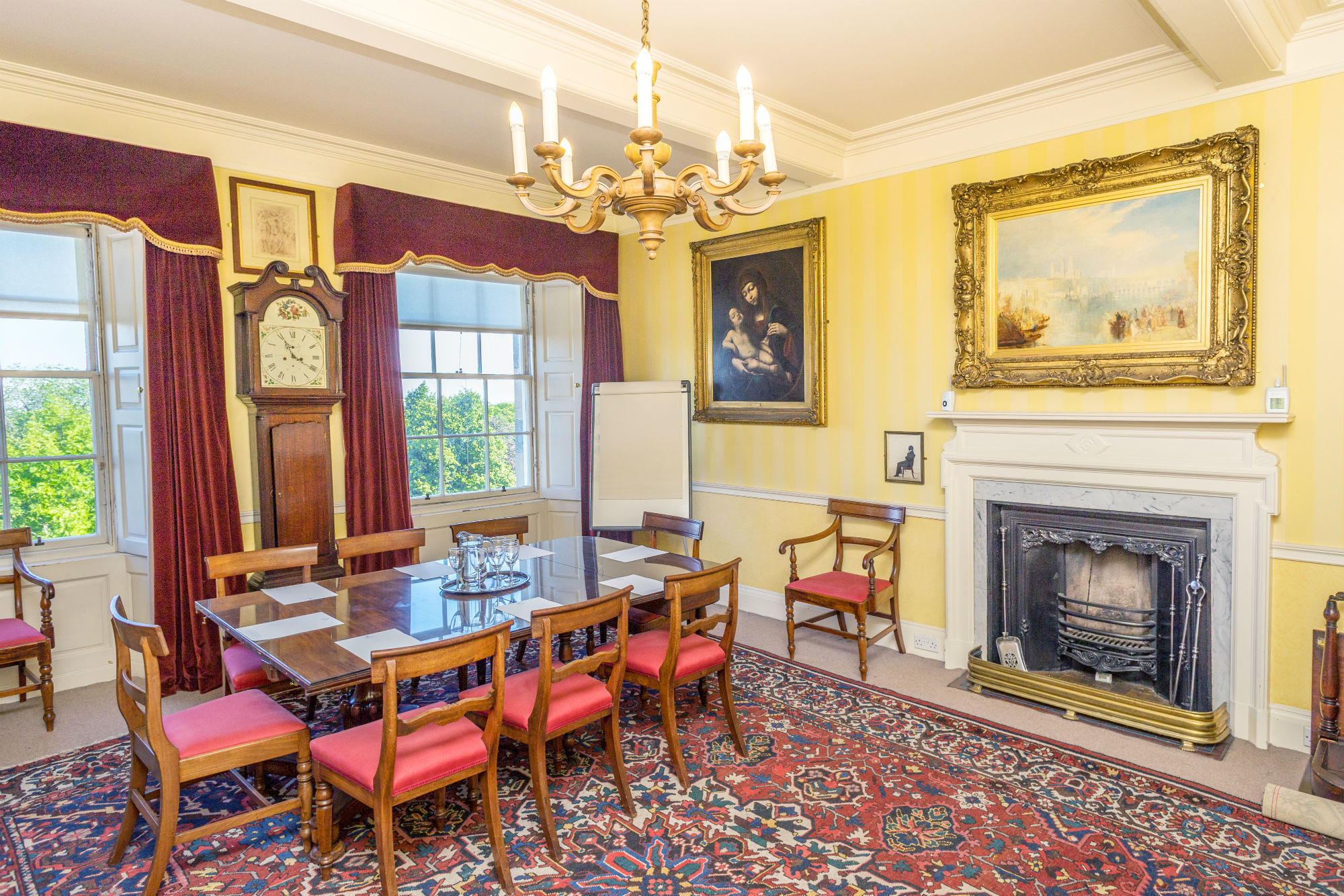 The elegant Drawing Room, situated on the first floor of this magnificent townhouse, enjoys views over Charlotte Square Gardens and can accommodate theatre- or boardroom-style meetings, evening receptions and dinners.