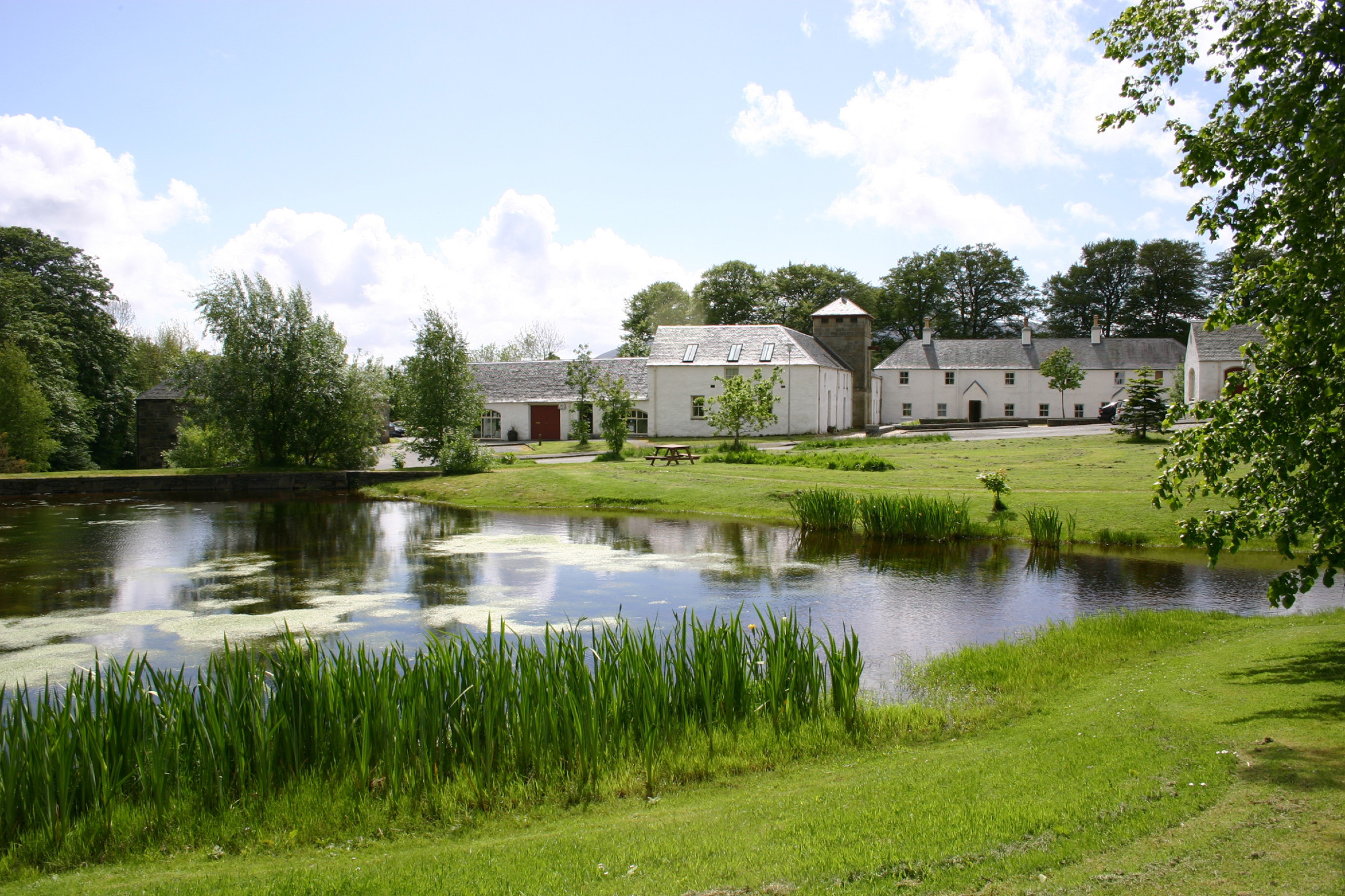 Around 20 years ago, the square underwent extensive redevelopment. The old, abandoned farm steading was completely renovated into housing, workshops and a visitor centre, and the old mill pond was re-created, providing a picturesque focal point and picnic area for the square.