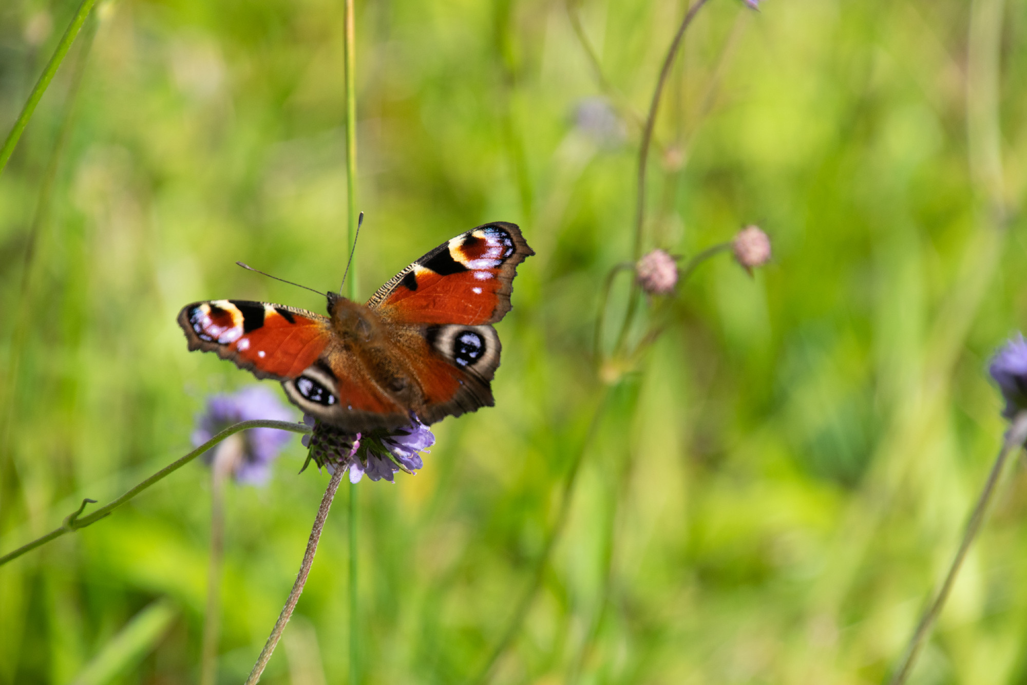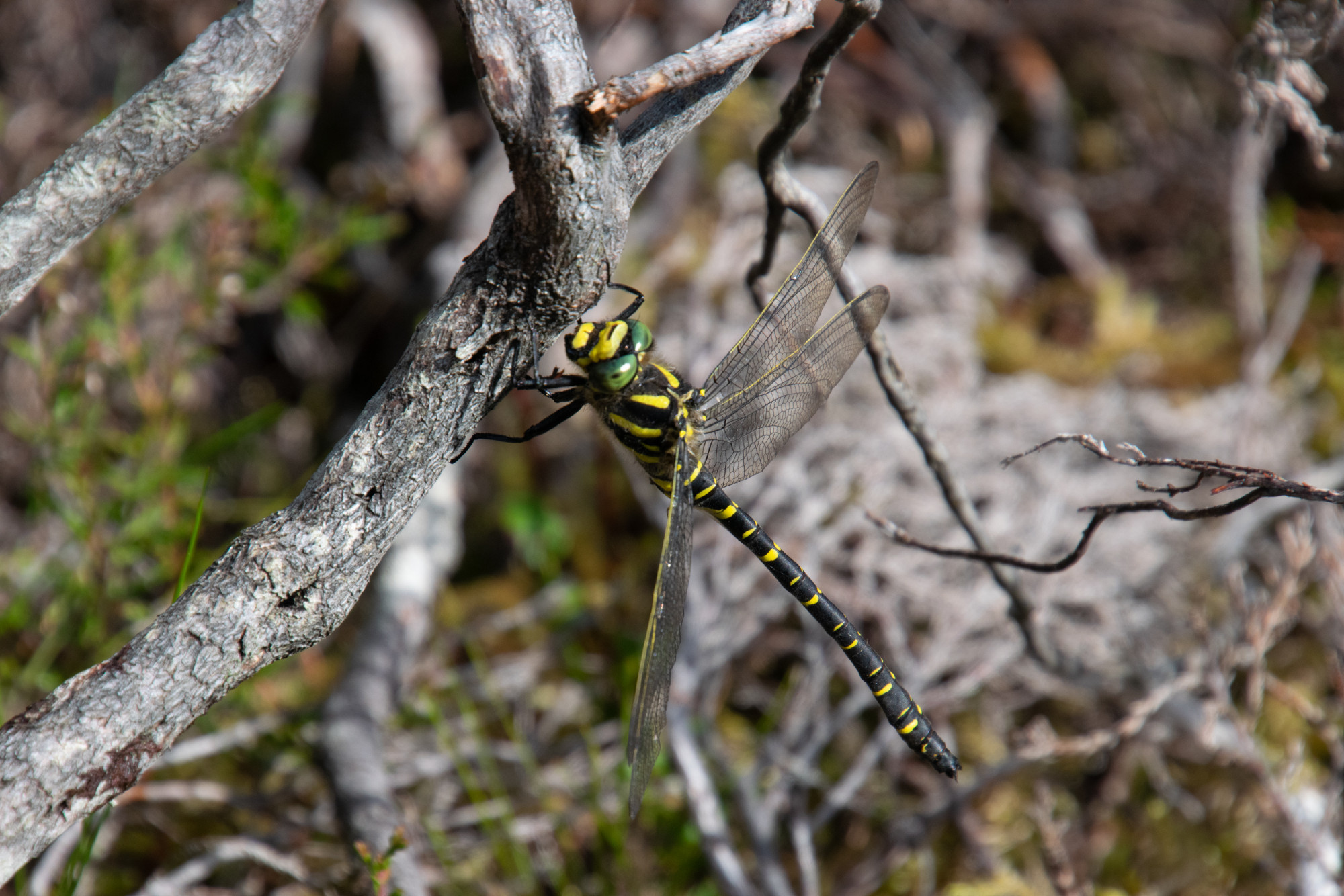 Around 300 types of moth and 18 butterfly species fly at night and day, including the rare narrow-bordered bee hawk-moth (Hemaris tityus), a large bee-like creature that does not buzz. Colourful dragonflies and damselflies fly and hover over the lochs, burns and bogs, with common blue damselflies (Enallagma cyathigerum) appearing in clouds on the banks of Loch Achaidh na h-Inich.