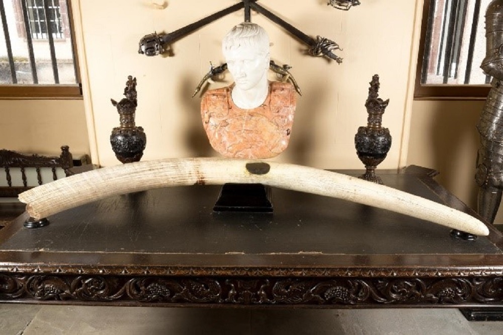 Many of our properties have collections of ivory objects, with notable collections at Crathes Castle, Hill of Tarvit Mansion and Newhailes House. One of the most striking pieces in the Trust’s ivory collections is a huge ivory elephant tusk on display at Fyvie Castle. Weighing 65 lbs, the tusk is the epitome of a trophy piece, a powerful symbol of colonial prowess and personal achievement. It was presented to Lord and Lady Leith of Fyvie Castle by Lieutenant Colonel A D Milne of the East African Medical Service, Kenya.