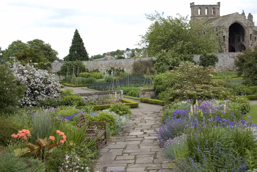 Our large herbaceous bed in front of the east wall of Harmony Garden has, in the past, been used as a backup bed for the dried flowers once sold at Priorwood Garden. We are now focusing on incorporating a Forbes of Hawick nursery link – a local nursery in nearby Hawick which was open from 1870–1969. It became one of the largest nurseries in the country and was celebrated for its collections of penstemon, phlox and delphinium, varieties of which would have been bought and planted in the garden at the time.