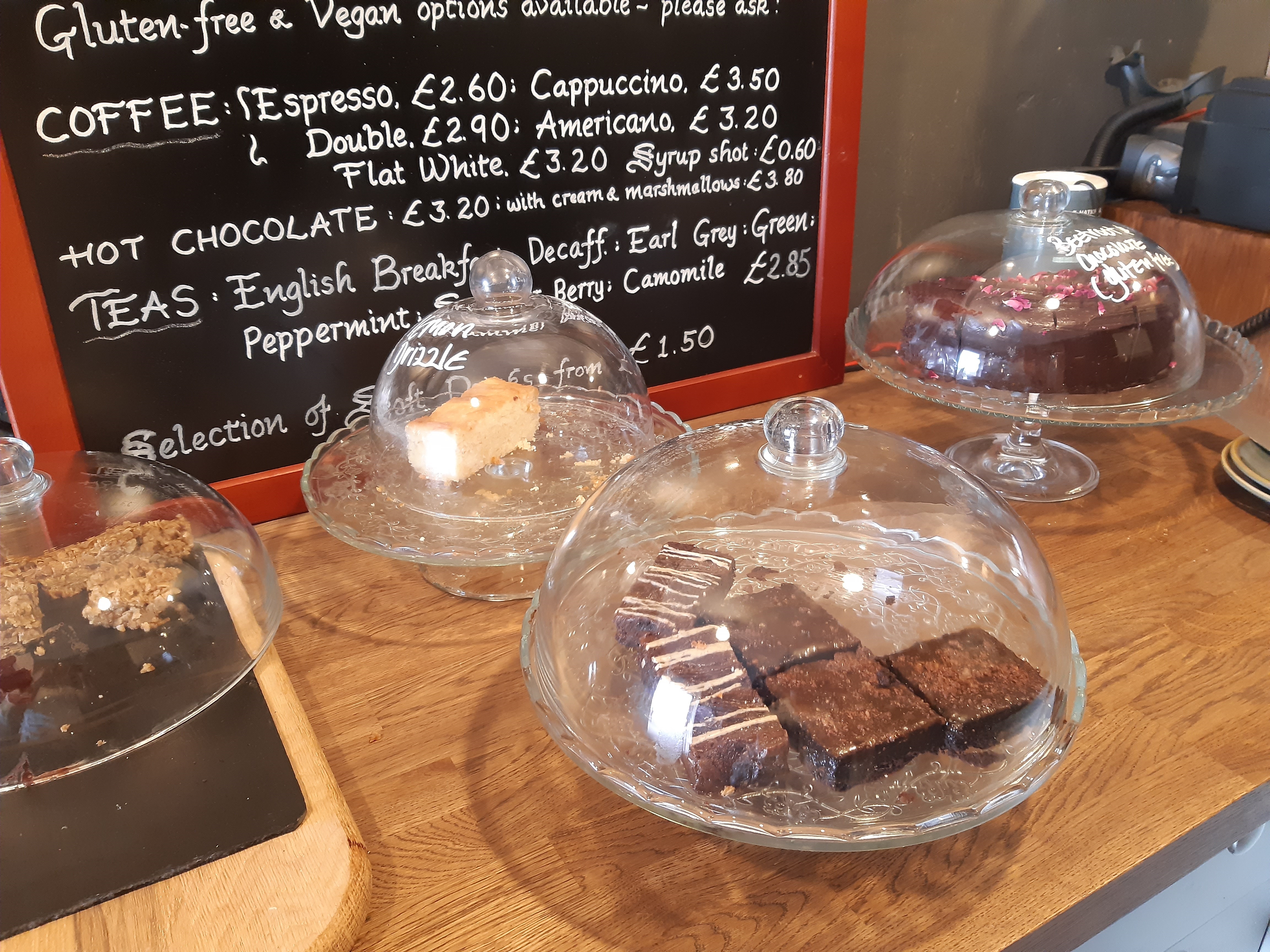 The tearoom serves a range of hot and cold food options, including soup, scones and a varied cake selection, as well as hot and cold drinks.