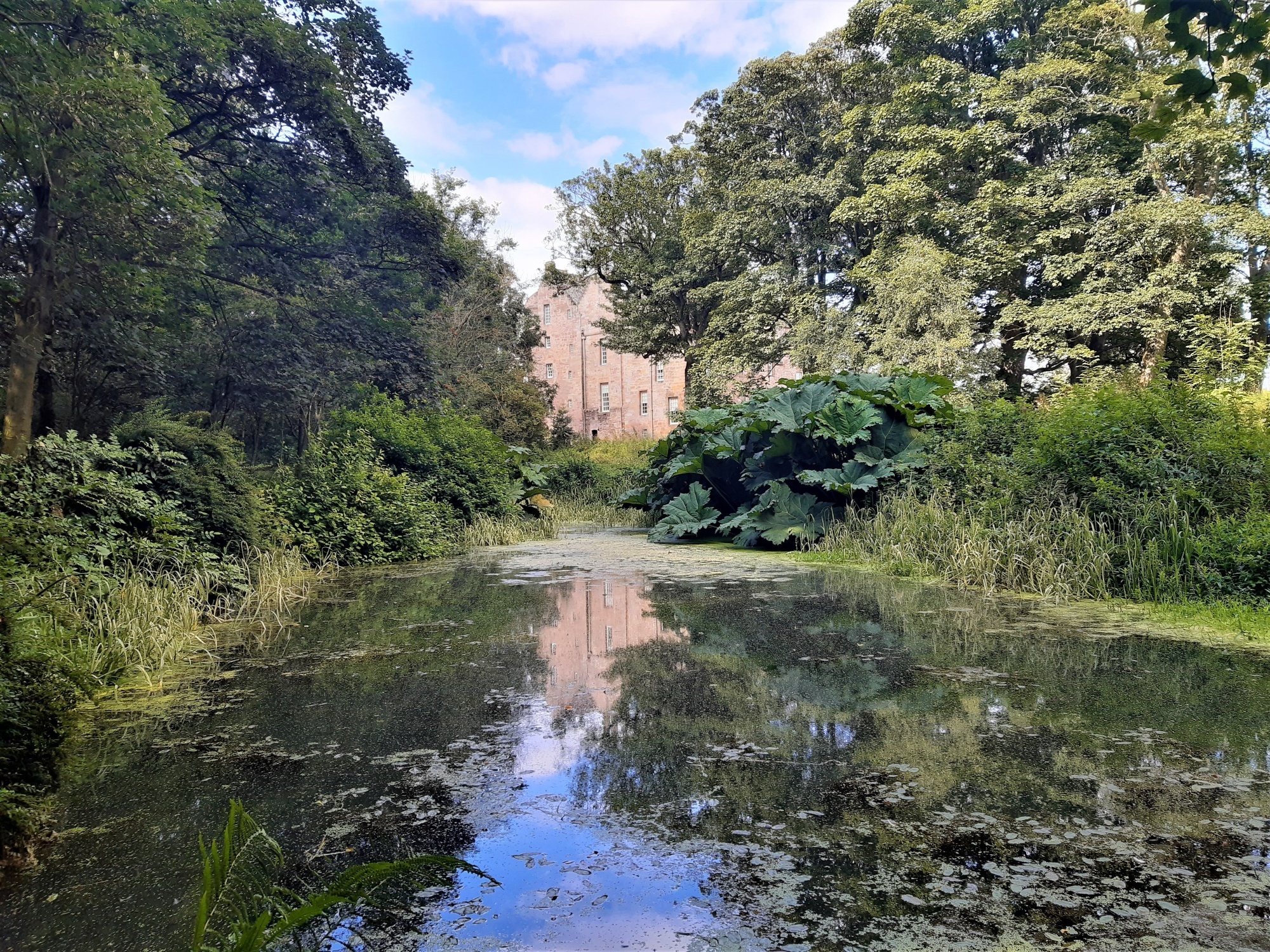 Wander along our woodland path, which can be started to the left of the driveway entrance or picked up beside the castle. Follow the burn upstream, past the large pond with the large-leafed gunnera and through the adventure playground. The path picks up again on the other side, over a bridge across the burn, taking you past the side of the walled garden and out to the meadow.