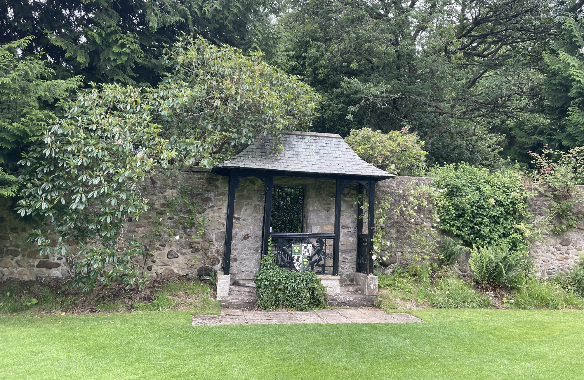 The small wrought-iron gate at the entrance to the garden bears the Gore-Browne Henderson crest, added by the family who donated the garden to the Trust in 1968. If you look carefully at the balustrade, you will also see the Rosebery crest – the 5th Earl of Rosebery owned the garden in the late 19th century.