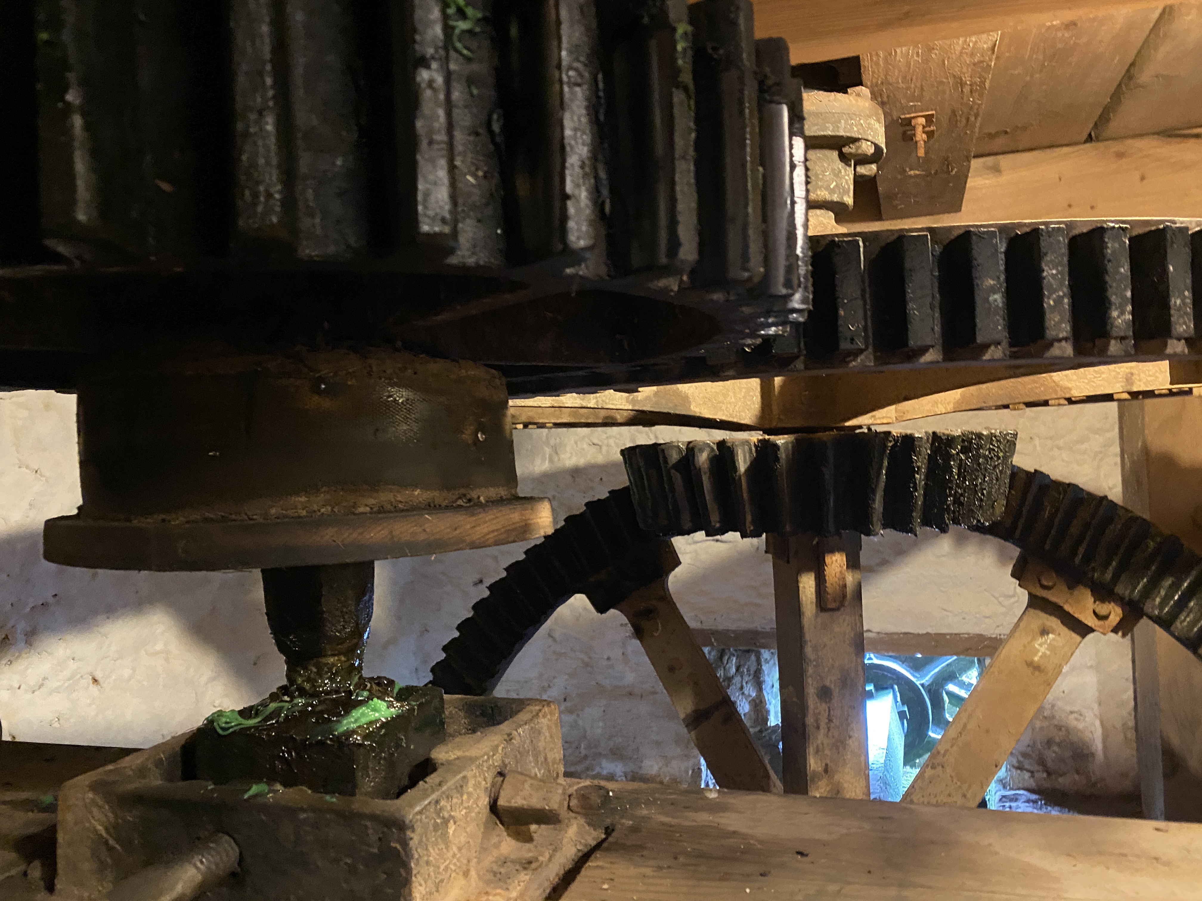 With the machines at rest, we can safely perform maintenance, greasing and oiling while they are not operating. This allows us to showcase conservation efforts while caring for the machinery at Preston Mill.