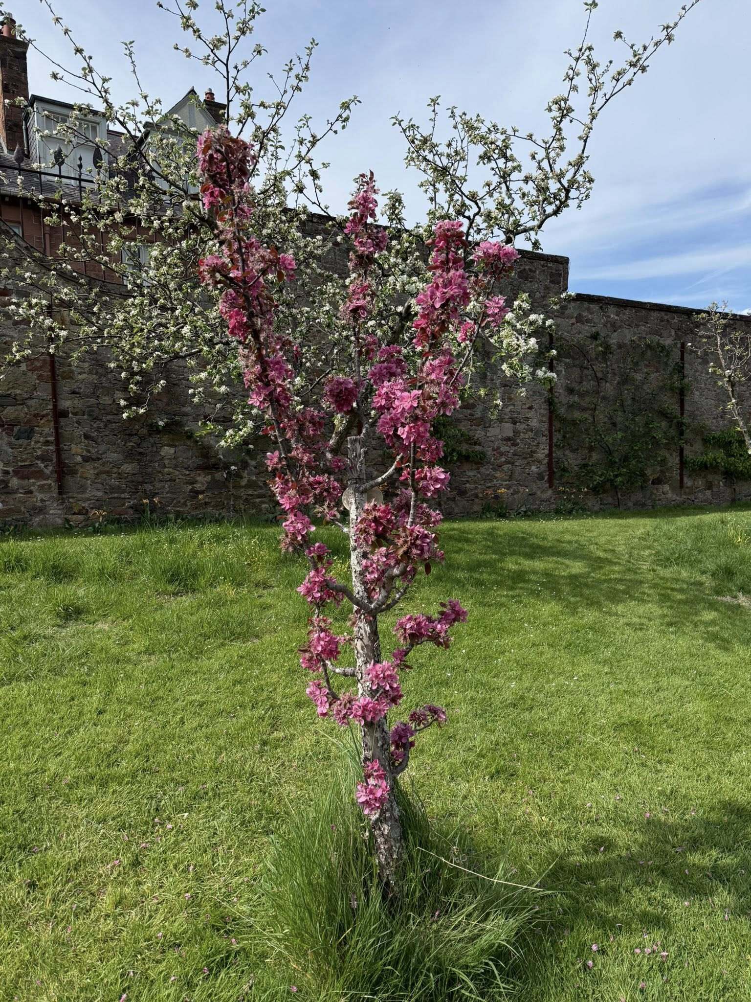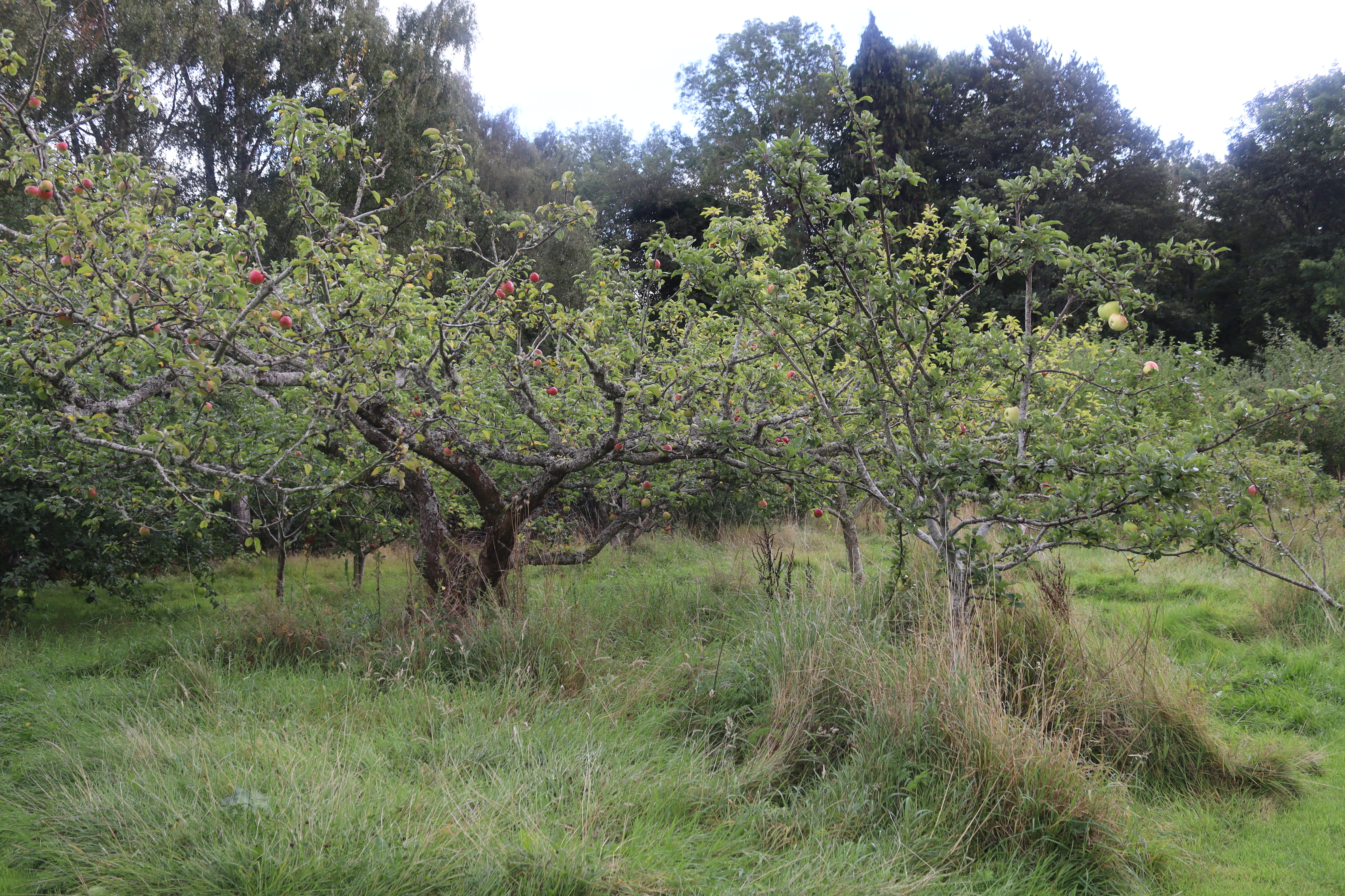 Once part of the abbey grounds, likely a section of the kitchen garden tended by the monks, the orchard has been around since the mid-to-late Victorian period. James Curle, along with his wife Blanche, resided in Priorwood House and was an enthusiastic gardener who cared for Priorwood Garden. His documentation features apple trees like Peasgood Nonsuch and pear trees such as Winter Nelis. The oldest tree in the orchard is a Bramley, thought to have originated in the mid-to-late 1800s. Other trees were planted around 1975, with an emphasis on introducing more local apple varieties from the region.
