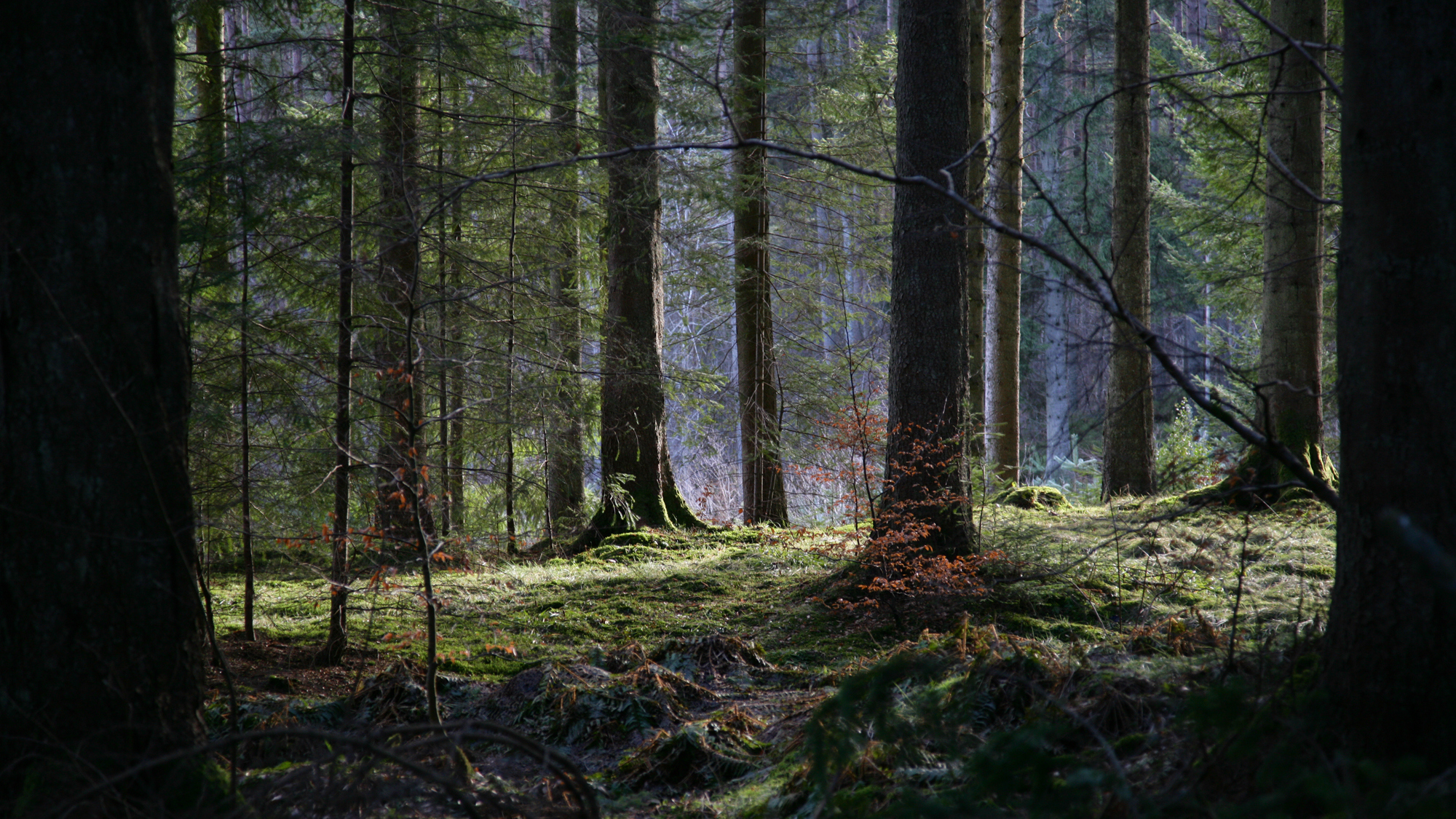 This bench resembles a Douglas fir cone and has been designed to encourage people to lie on their backs and look up into the canopy. This area here is called the ‘Cathedral’ or the ‘Temple’ as the Douglas firs resemble pillars and their crown a roof.